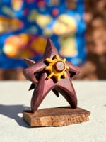 Stylized Carving of Mega Starmie, dyed ash wood/padook/citrus wood. Includes kinetic element, star on back spins